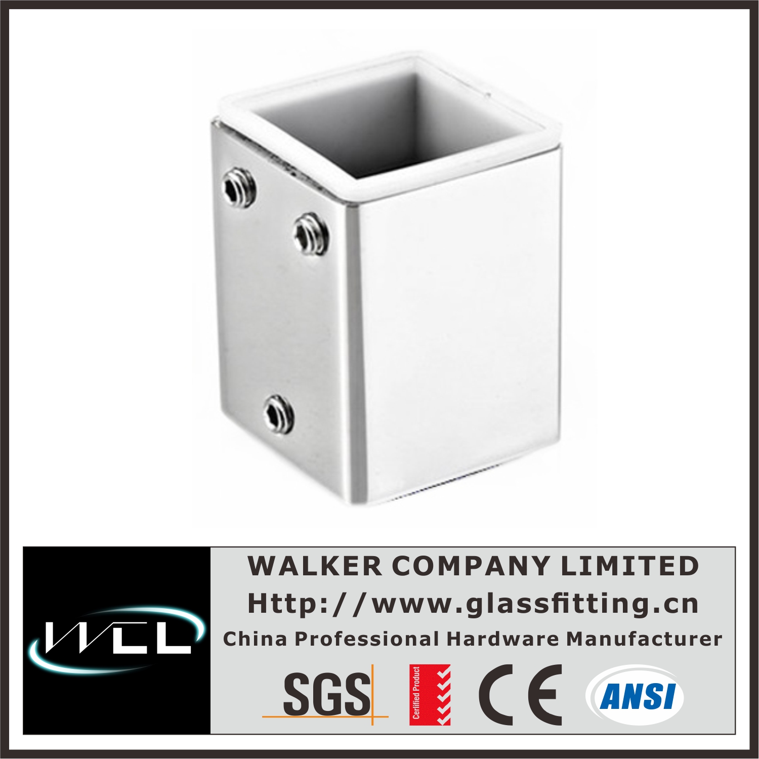 Model No.: AC023AWall Mount Bracket for Square Support Bar, Square Tubing Matches Geometry of Many Popular Walker Shower Hinges, Available in Several Beautiful Finishes, Use Monolithic Tempered Glass, Three Year Warranty