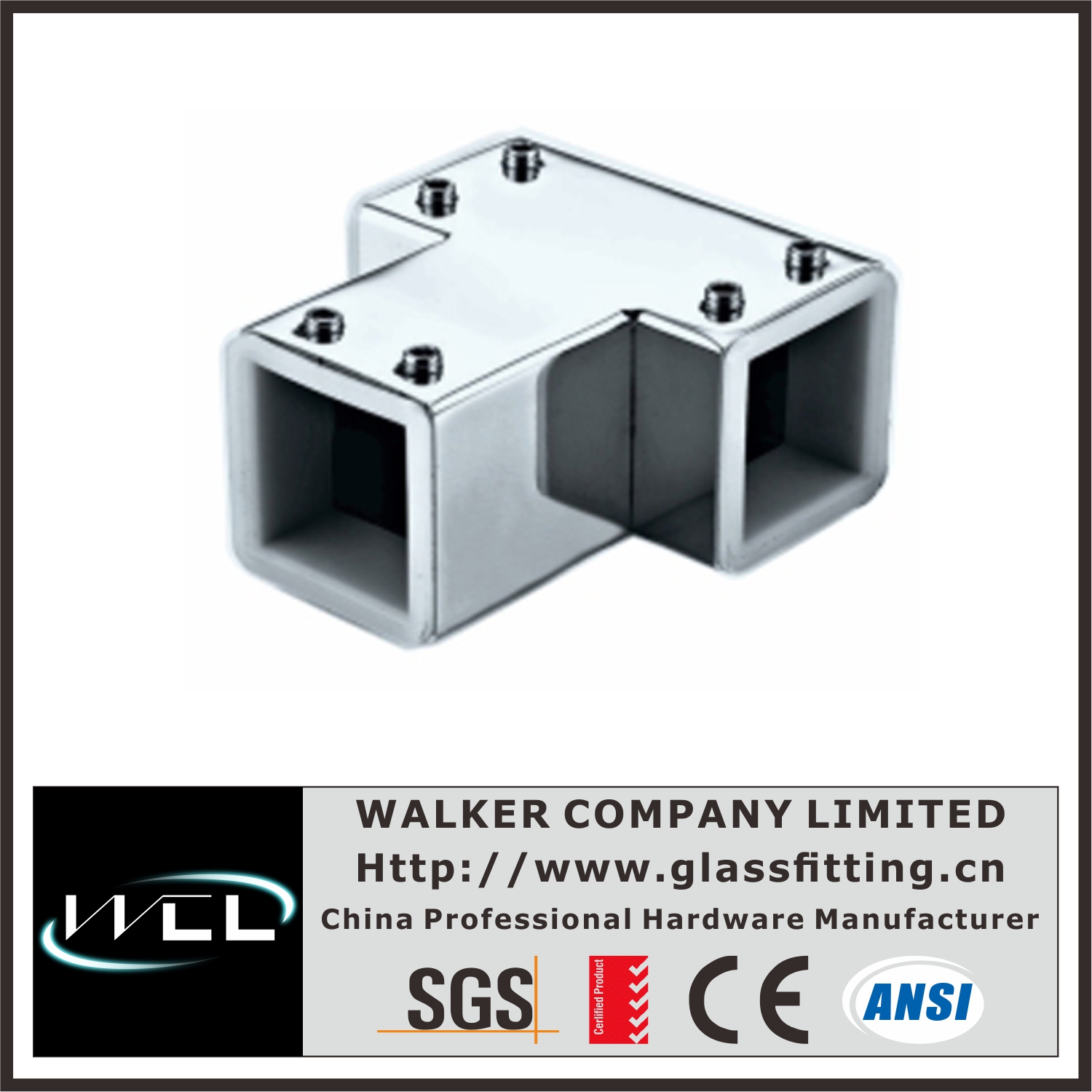 Model No.: AC027'T' Junction Bracket for Square Support Bar, Square Tubing Matches Geometry of Many Popular Walker Shower Hinges, Available in Several Beautiful Finishes, Use Monolithic Tempered Glass, Three Year Warranty